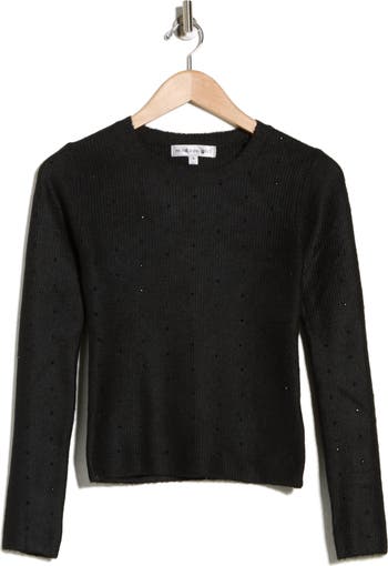 Mini rhinestones bring party-ready shimmer to this cropped pullover sweater knit in a ribbed, fitted silhouette.