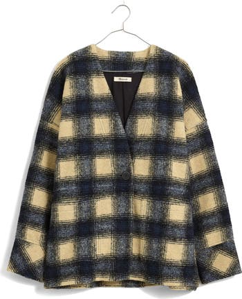 Crafted of cozy, wool-enriched brushed jacquard, this plaid cardigan is lined with lightweight jersey making it the perfect layering piece. With relaxed drop shoulders and a button-front wrap, it's like wearing a blanket all day long.