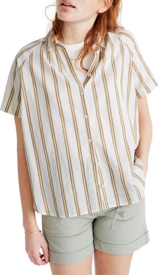 Perfect for on-the-go summer days this easy to wear button front shirt features a cool double bronze stripe.