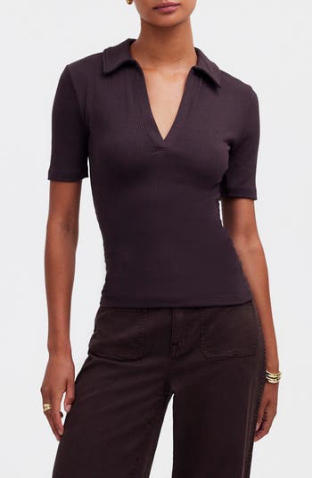 Made of supersoft and drapey ribbed fabric, this top has an open polo collar and flattering slim fit. Comfy as a tee, but also a little dressy? A dream.