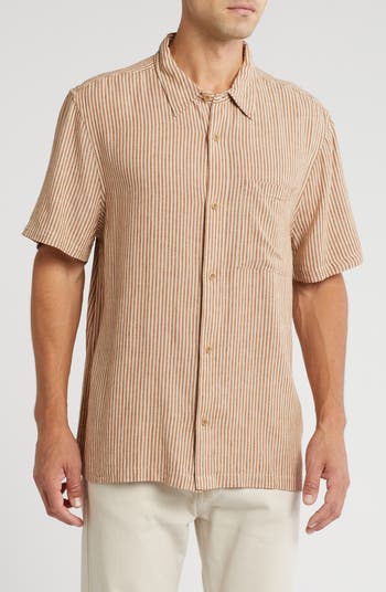 Easy Stripe Short Sleeve Linen Blend Button-Up Shirt