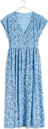 Crafted from a supersoft floral-print challis fabric, this flowy midi dress has cap sleeves and buttons all the way down the front. Comfy and loose, it has a laid-back feel and a put-together look.
