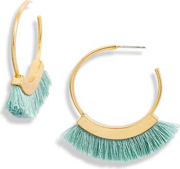 Decked out with soft, textural fringe in party-perfect hues, these sculptural hoop earrings can turn any look into full-on Friday night glam.