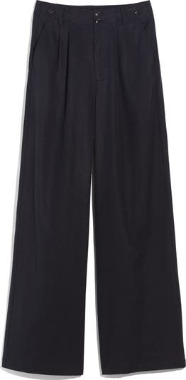 Made of a drapey Tencel® lyocell, cotton and linen blend, these straight-leg pants have sailor-inspired button tabs at the pleated high waist. A cool pick for your back-in-the-office needs.