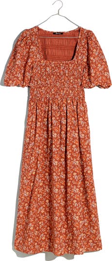 Featuring a shirred bodice and voluminous puff sleeves, this pretty midi with pockets is made of lightweight cotton dobby and is effortlessly put-together.