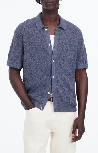 Knit from marled cotton yarn for a speckled look, this sweater-polo features a full button front and genuine shell buttons.