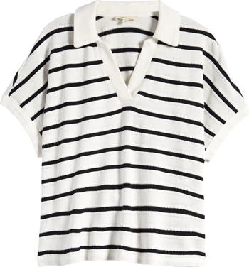 There's nothing like stripes in the summertime, and this top says it all. With a relaxed fit in a textural cotton knit, it has an open johnny collar and easy dolman sleeves.