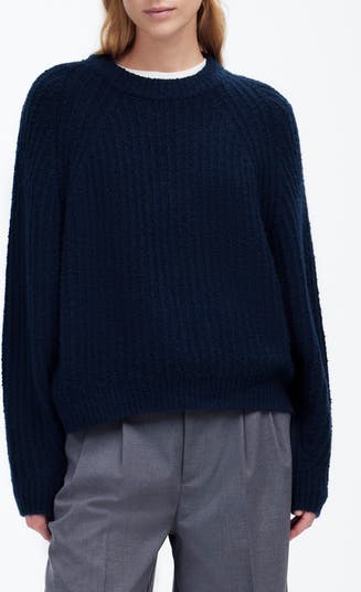 Supersoft and cozy, this cotton-blend ribbed sweater features a crewneck and raglan sleeves. Its slightly oversized fit offers an easy, cool throw-on-and-go vibe.