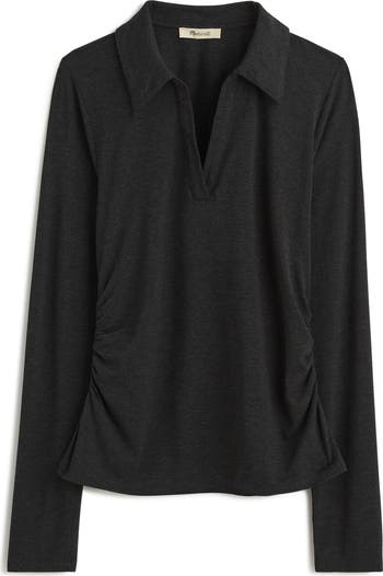 Made of soft and drapey jersey, this long-sleeved top features a classic polo collar with an open V-neckline. With gentle gathering at the side seams, it has a flattering slim fit.