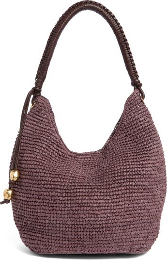 A natural addition to any outfit, this textural straw bag features a handwoven leather strap with intricate cutout detailing.