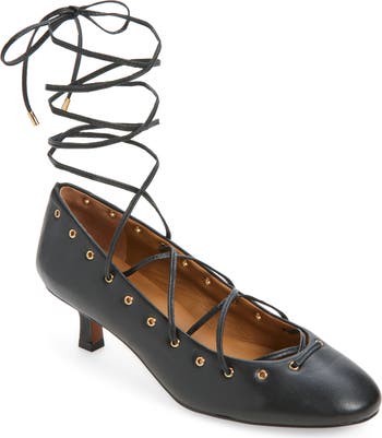An elegant play on a classic, this leather pump features a round toe, adjustable lace-up detail and a walkable kitten heel making it a day-to-night superstar. It's complete with Madewell's signature MWL Cloudlift Lite padding for maximum comfort.