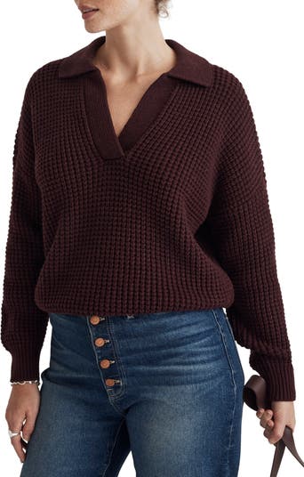 Versatile enough to be worn on its own or layered, this waffle-stitch sweater has a polo-style collar, dropped shoulders and a super-relaxed fit.
