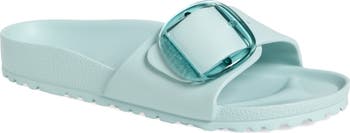 An oversized buckle cinches the angled bridge strap of a sandal built on the legendary Birkenstock footbed for time-tested comfort and on-trend style. The EVA-cushioned footbed absorbs shock and mimics the shape of a healthy foot, while pronounced medial and metatarsal arches support the instep and ball of your foot.