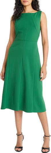 Clean lines and simple details offer a refined appearance in this fit-and-flare dress that's perfect for in-office or off-duty looks.
