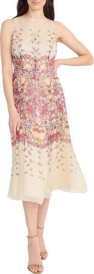 Butterfly Print Sleeveless Midi Dress