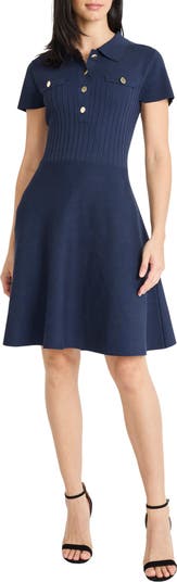 This minidress made from a soft knit pairs a button-front rib top with a flared skirt.