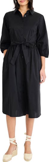 Easily transition from desk to dinner in a solid hued shirtdress framed with three-quarter sleeves and a spread collar.