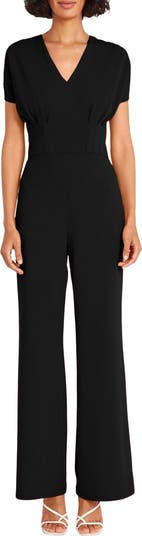 Deep pleats at the waist give shape to this loose-fitting jumpsuit designed with wide legs and handy side pockets.