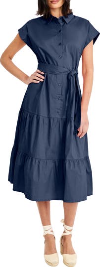 A matching tie snatches the waistline of a shirtdress cut from low-stretch cotton for a crisp fit with every wear.