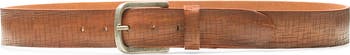 Loosely gridded leather lends rich texture to a slender belt cinched by a gleaming buckle.