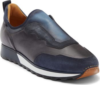 Burnished leather and supple suede bring a mixed-media aesthetic to a Spanish-made sneaker featuring a slip-on design and underfoot cushioning for easy and lasting wear.