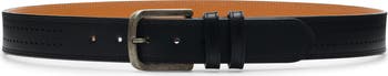 Bands of shallow perforations bring pattern and dimension to a belt made of burnished Italian leather and styled to elevate any casual look.