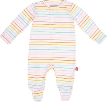 Candy-colored stripes sweeten a signature supersoft footie made of stretchy modal jersey with magnetic fasteners for easy changes.