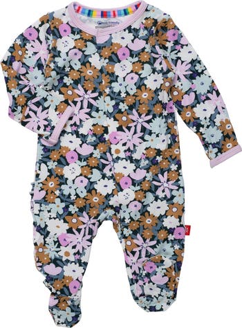 Sweet blooms and a ruffled back side bring charm to this ultrasoft footie featuring magnetic fasteners for easy changing.