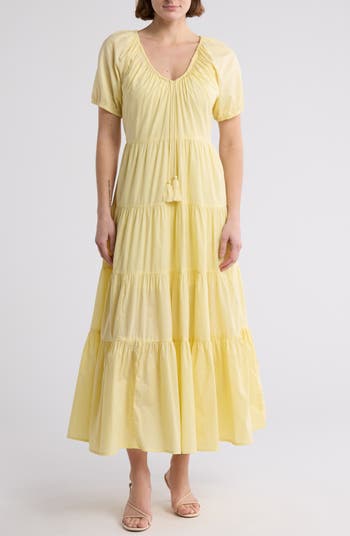 Easily go from the farmers' market to weekend brunch in this breezy pure-cotton dress designed in a tiered silhouette and with puffed shoulders.