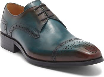 A handstained ombré design and brogue details distinguish this cap-toe derby grounded on a fully cushioned footbed.
