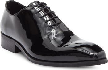 A durable rubber sole grounds a wholecut leather oxford complete with a patent finish that brings sophisticated elegance to workday looks and special occasions.