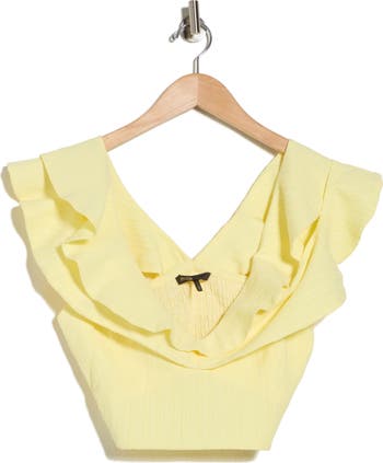 Fanciful frills frame the neckline of this textured-knit top perfect for elevating your off-duty looks.
