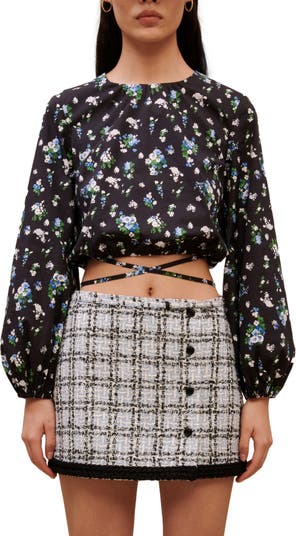 Crisscrossing straps accentuate the glimpse of skin provided by this stretch-cotton crop top created in a print of delicate blossoms.