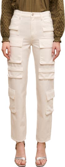 A crowd of flap pockets lend utilitarian vibes to these straight-leg pants cut with a modern high waist.