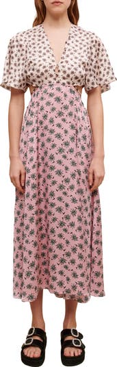 Dual colors further the intrigue of a cutout dress featuring a tie-back closure and a palm pattern that exudes casual, laid-back vibes.