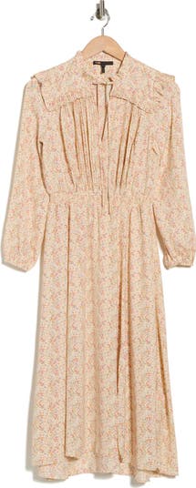 A field of ditsy wildflowers brings sweet style points to a woven midi dress framed by a split neckline that can be worn tied or undone for a versatile touch.