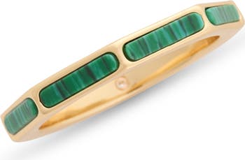 Malachite stone ovals bring a pop of color to this slender stackable ring crafted with a geometric band for contemporary style.