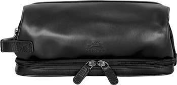Keep all of your toiletry essentials organized in this buffalo leather bag featuring a side carry handle for added convenience.