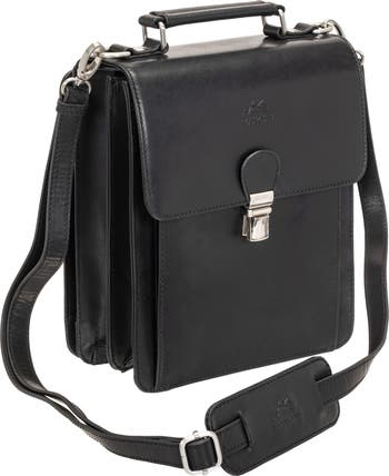 Keep all of your business essentials organized and close by with this leather travel bag featuring two sections and a zipper rear organizer with multiple card slots.