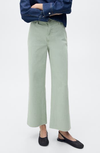 Inspired by retro culottes, these wide-leg jeans feature a flat-front waist, raw hems and low-stretch denim in a day-one wash.