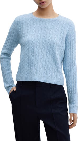 Classic cable knitting sweetens the style of a soft, lightweight sweater perfect for building cold-weather outfits.