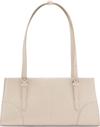 Clean lines and a structured profile defines a slender shoulder bag rendered in supple faux leather and suspended from adjustable straps for versatile wear.