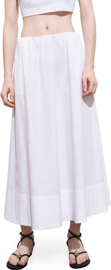 Crisp yet breathable cotton gives season-spanning comfort to this midi skirt framed by a pair of handy pockets.