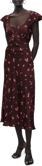 Charming roses romance this fit-and-flare midi framed by slight cap sleeves for a sweet silhouette.