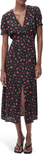 A dainty floral pattern makes a delightful statement on this flowy short-sleeve dress in a perfect midi length.