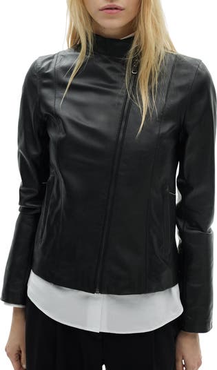 Streamlined seaming and minimal detailing lets the supple leather shine on a sleek, lightweight jacket finished with moto-inspired hardware.