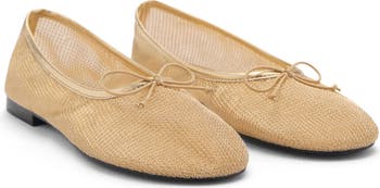 Lightweight, breezy mesh brings easy-stepping comfort to a ballerina flat styled with solid coloring to complement everything in your sunny-day wardrobe. The low profile and a slender bow over the toe provide a traditional finish to the fresh, peek-a-boo look.