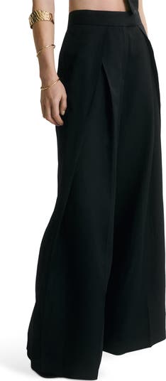 Crisp pleats bring texture and polish to these high-waist linen-kissed pants punctuated with wide hems for a leg-elongating effect.