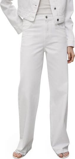 Frayed hems bring elements of ease to these high-rise, full-length wide-leg jeans made from nonstretch denim.