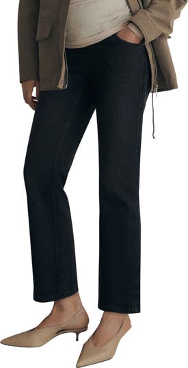 Ankle-length straight-leg jeans are eased with stretchy elastic panels at the waist to keep you comfy and supported throughout your pregnancy.